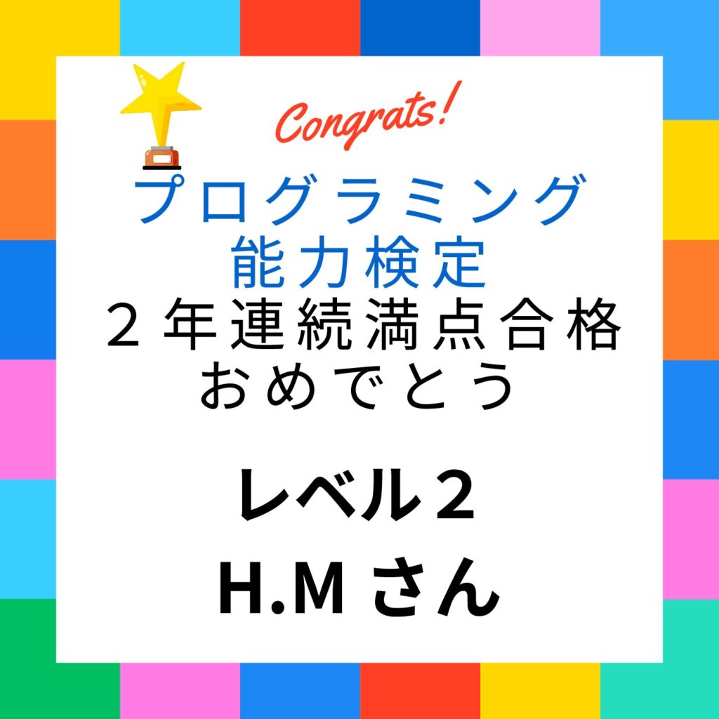 プログラミング能力検定2年連続満点合格おめでとう